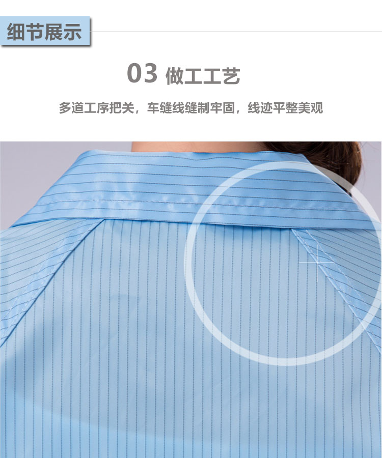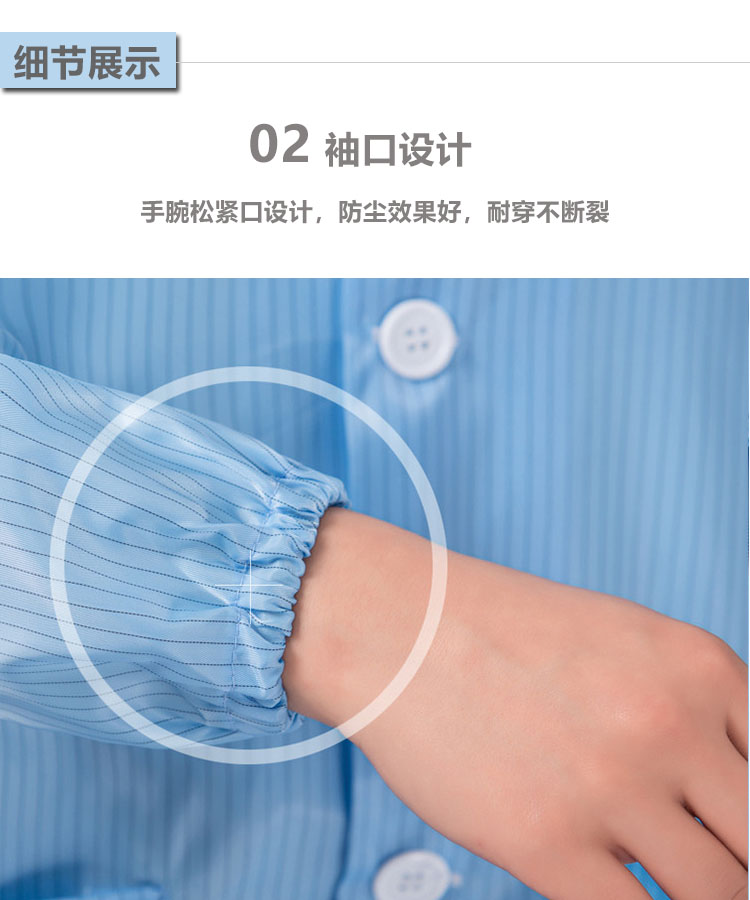 防靜電無(wú)塵大褂是由專業(yè)的防靜電面料制作,采用滌綸長(zhǎng)絲與高性能導(dǎo)電纖維編織而成,具有高效、永久的防靜電、防塵性能,能有效釋放人體靜電荷,從而滿足高級(jí)別無(wú)塵環(huán)境的要求。廣泛應(yīng)用于電子電器、儀器儀表、食品、生物制藥、實(shí)驗(yàn)室等無(wú)塵車間及產(chǎn)線。