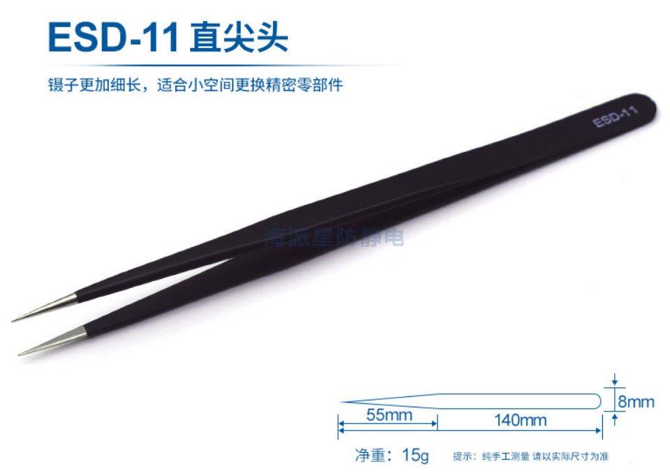 ESD-11 鑷子更加細(xì)長(zhǎng),適用于小空間更換精密零部件