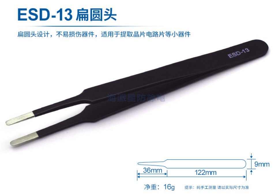 ESD-13 扁圓頭設(shè)計(jì),不易損傷器件,適用于提取晶片、電路片等小器件