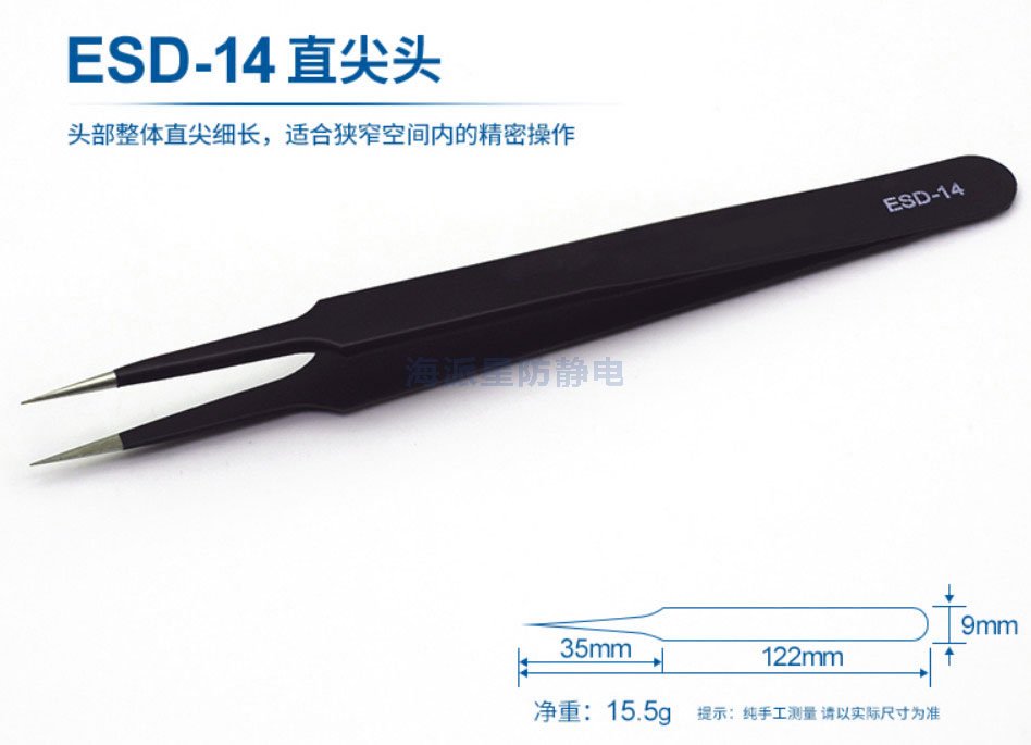 ESD-14 頭部整體直尖細(xì)長(zhǎng),適合狹窄空間內(nèi)的精密操作