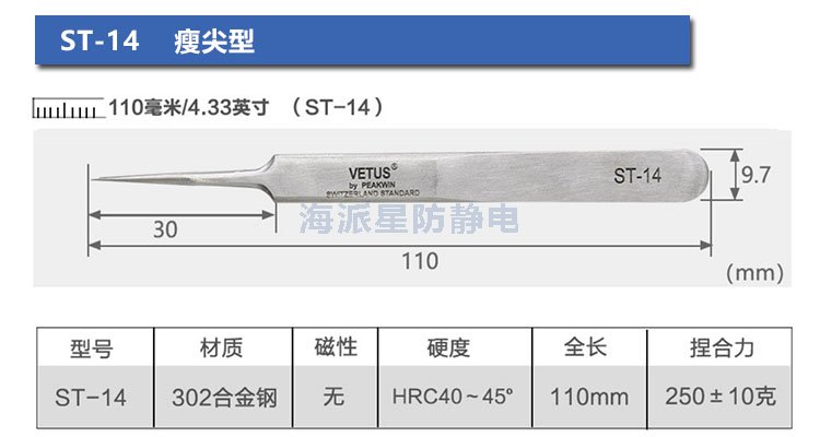 | ST-11 | 鑷子更加細(xì)長(zhǎng),適合在狹小空間更換精密元件 | ||||||