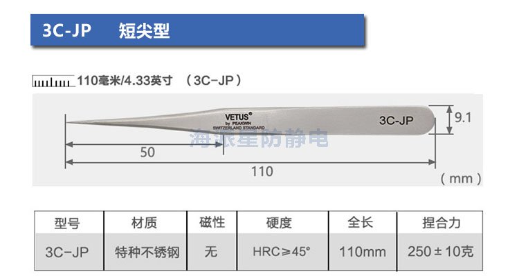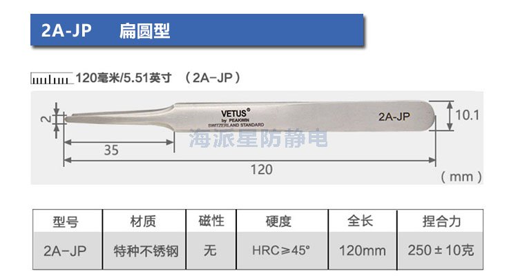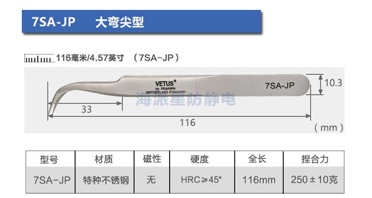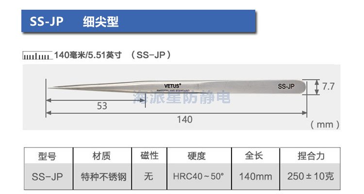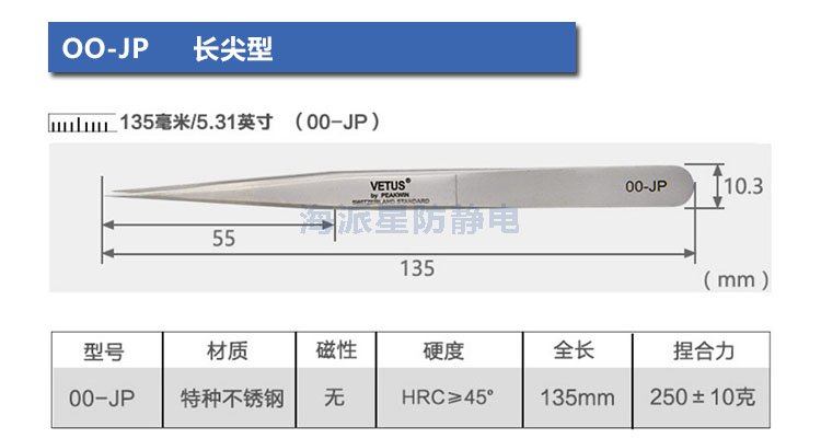 VETUS/維特斯品牌鑷子,產(chǎn)品系列有:電子鑷子系列、JP系列、SA系列、ST系列、ESD防靜電系列、SED可換頭防靜電系列、MCS美容鑷子系列共100多個品種,產(chǎn)品具有超精細(xì)、高精密、抗磁、抗酸、超硬又有彈性、超耐用等特點。產(chǎn)品銷往三十多個國家和地區(qū),成為全球很有知名度的國際品牌產(chǎn)品。
